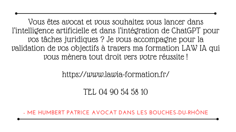 Si vous êtes avocat et que vous souhaitez exploiter l'intelligence artificielle, une formation ChatGPT spécialement pensée pour le domaine juridique peut s'avérer indispensable !